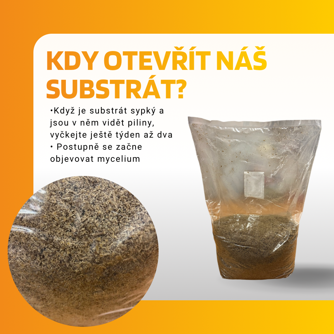 Start: Balení stačí na jednom místě naříznout, aby mohly plodnice růst.