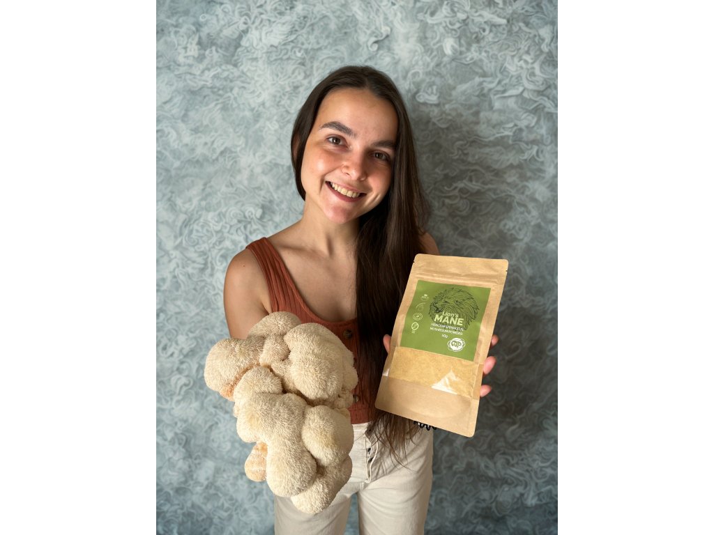 100% prášek z plodnice korálovce ježatého (Hericium erinaceus).